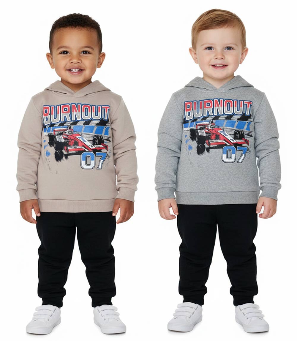 - Descripción: S1ope Sudadera con capucha y pantalones deportivos Infant Car Race Burnout Screen